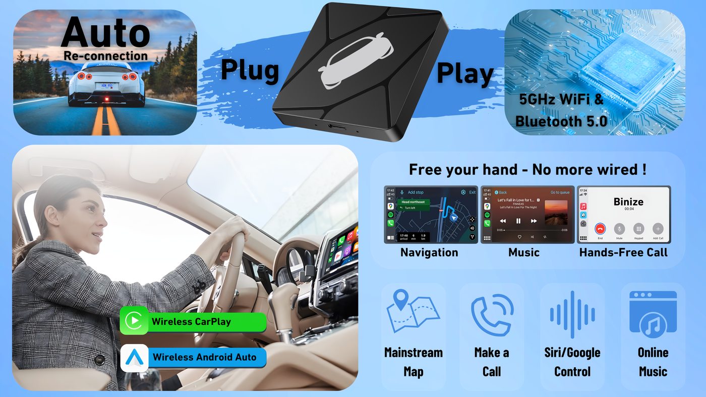 Wireless CarPlay/Android Auto Adapter for Vehicle with OEM Wired CarPlay/Android Auto - My Car Supports Wired CarPlay is backordered and will ship as soon as it is back in stock.