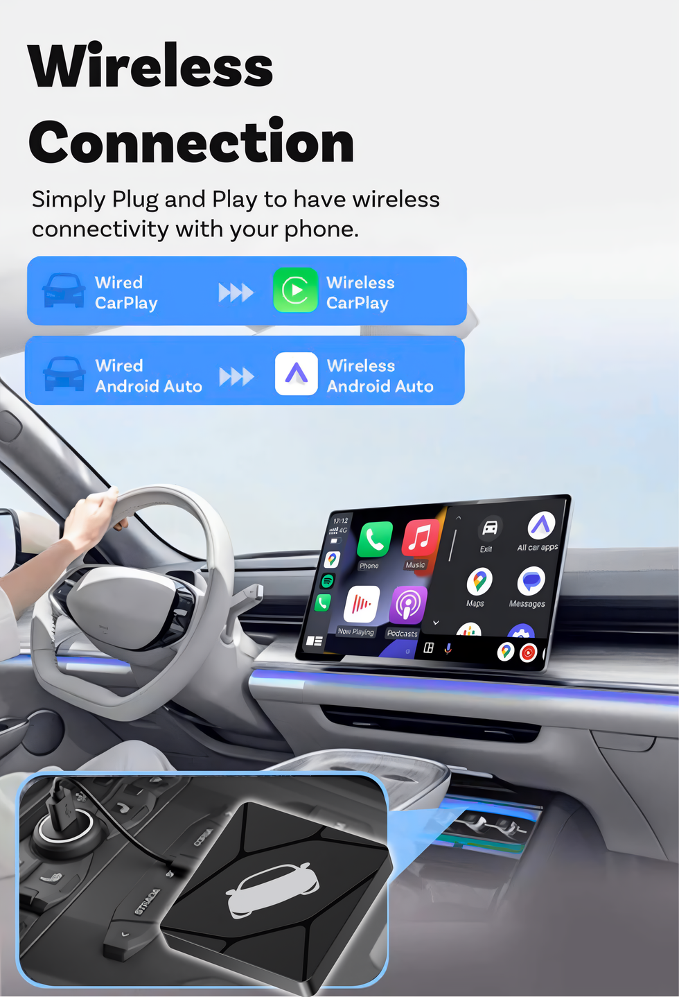 Wireless CarPlay/Android Auto Adapter for Vehicle with OEM Wired CarPlay/Android Auto