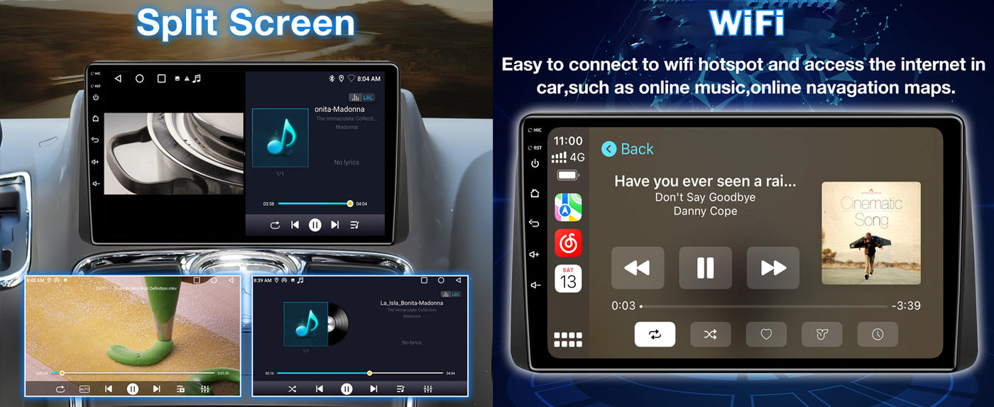 Enjoy split-screen functionality for running maps and music/video simultaneously. Control the stereo safely with steering wheel buttons for calls, volume, and track changes. Features HiFi superior audio quality, ensuring an immersive sound experience while keeping you focused and in control.