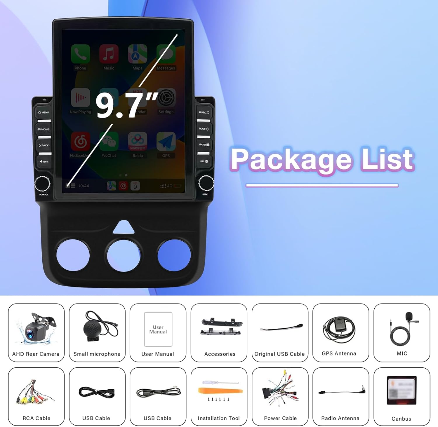 9.7-Inch HD Touchscreen Car Stereo for Dodge Ram 1500/2500/3500 (2013–2018, Manual AC Only)
