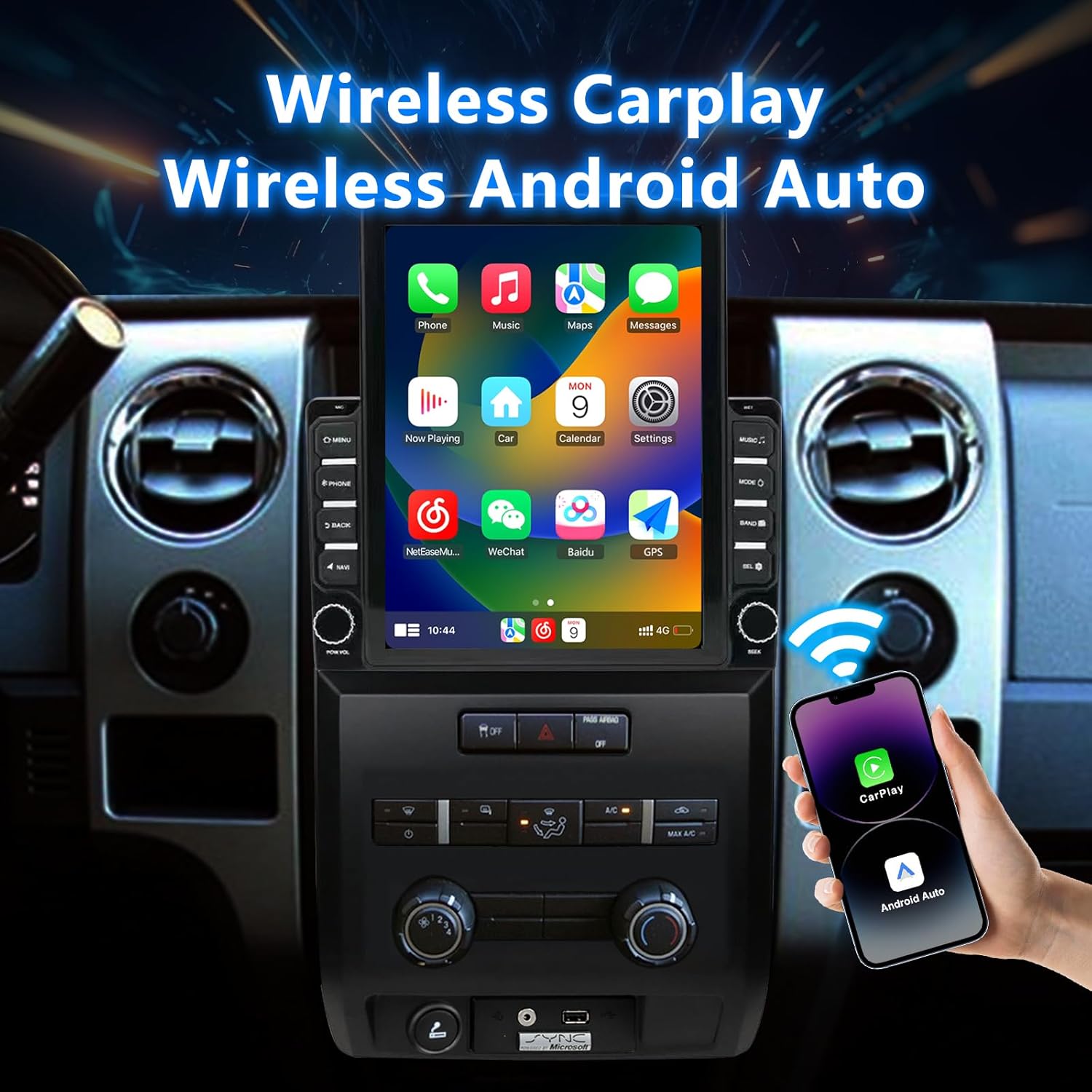 Android 13 Car Stereo for Ford F150 2009-2014 (Manual AC), Supports Wireless CarPlay & Android Auto, BT/WiFi/GPS/FM/SWC/1080P Backup Camera