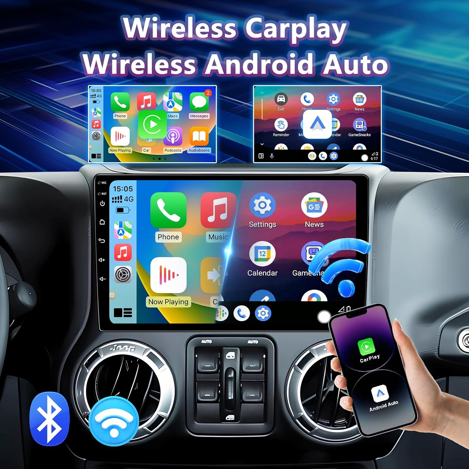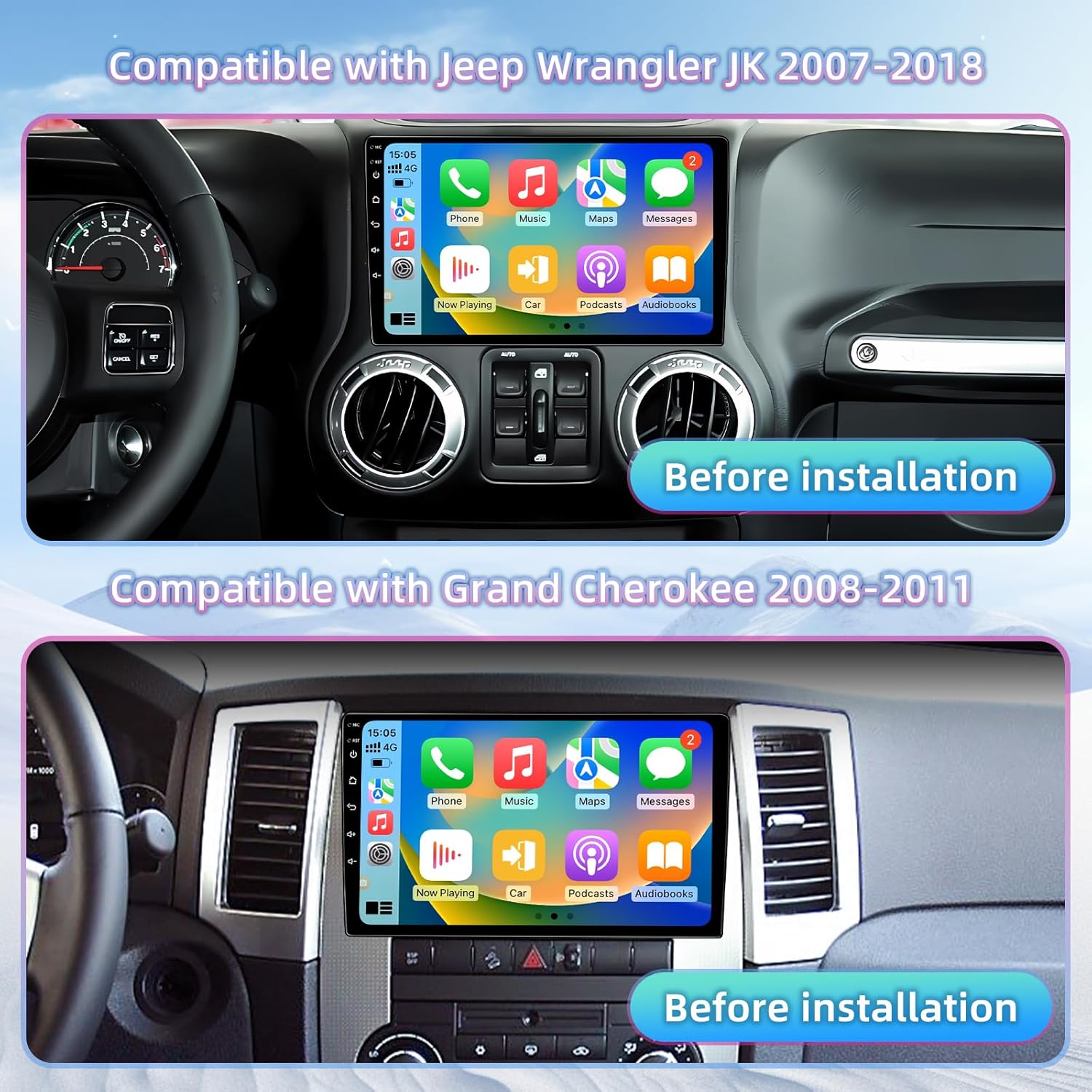 Android 13 Car Stereo for Jeep Wrangler (2007-2018), JK, Compass, Grand Cherokee Supports Wireless CarPlay/Android Auto