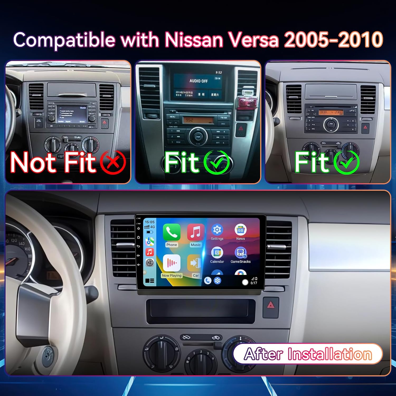 This upgraded 9-inch touchscreen car stereo is designed specifically for Nissan Versa models from 2005 to 2010. To enable steering wheel controls, please perform button learning in the settings menu after installation. Before purchasing, ensure your vehicle’s power cable port matches the one shown on the product page.