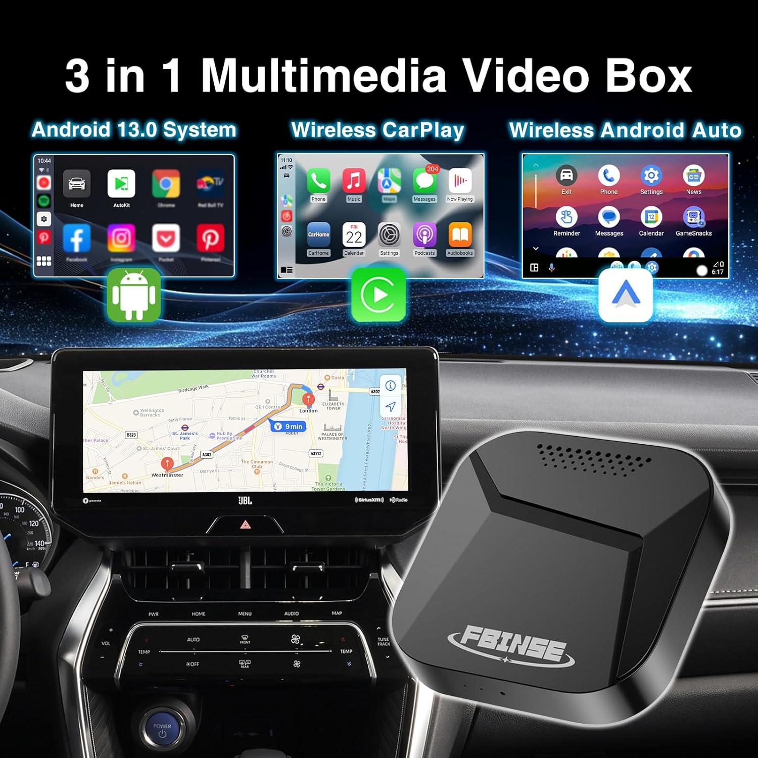 Android Auto Ready: For Android users, this car streaming device also supports wireless Android Auto, providing a familiar interface for navigation, communication, and entertainment. NOT for Samsungs.