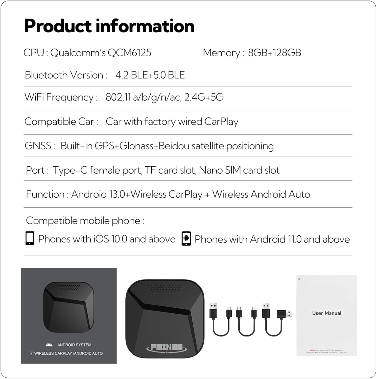 Elevate your driving experience with the CarPlay AI Box for the Ford F150. Enjoy the convenience of wireless Apple CarPlay or Android Auto in your trusted vehicle, enhancing both safety and enjoyment on every journey. Whether navigating through traffic, staying connected with loved ones, or enjoying your favorite playlists, the CarPlay Ai Box brings cutting-edge technology to your fingertips.