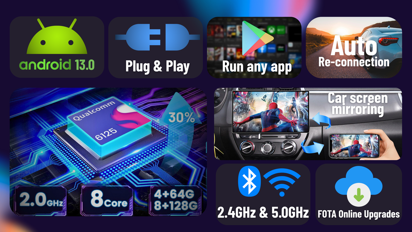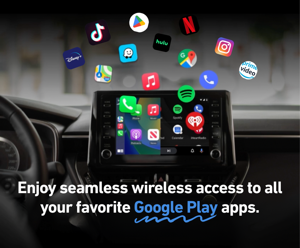 - It supports wireless Apple CarPlay and Android Auto, with fast and stable performance. The device offers multifunctionality, including streaming apps like Netflix and YouTube,GPS navigation, and dual-screen operation.