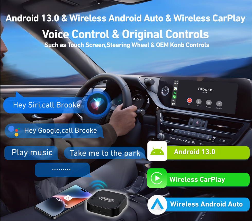 FBINSE B1 Android 13 CarPlay AI Box For Car with Wired CarPlay/Android Auto