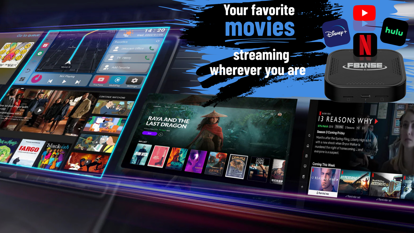 Watch anything from your favorite streaming platform on your car's display screen. Connect The Fbinse B1 Pro to any CarPlay enabled device and instantly start enjoying it!