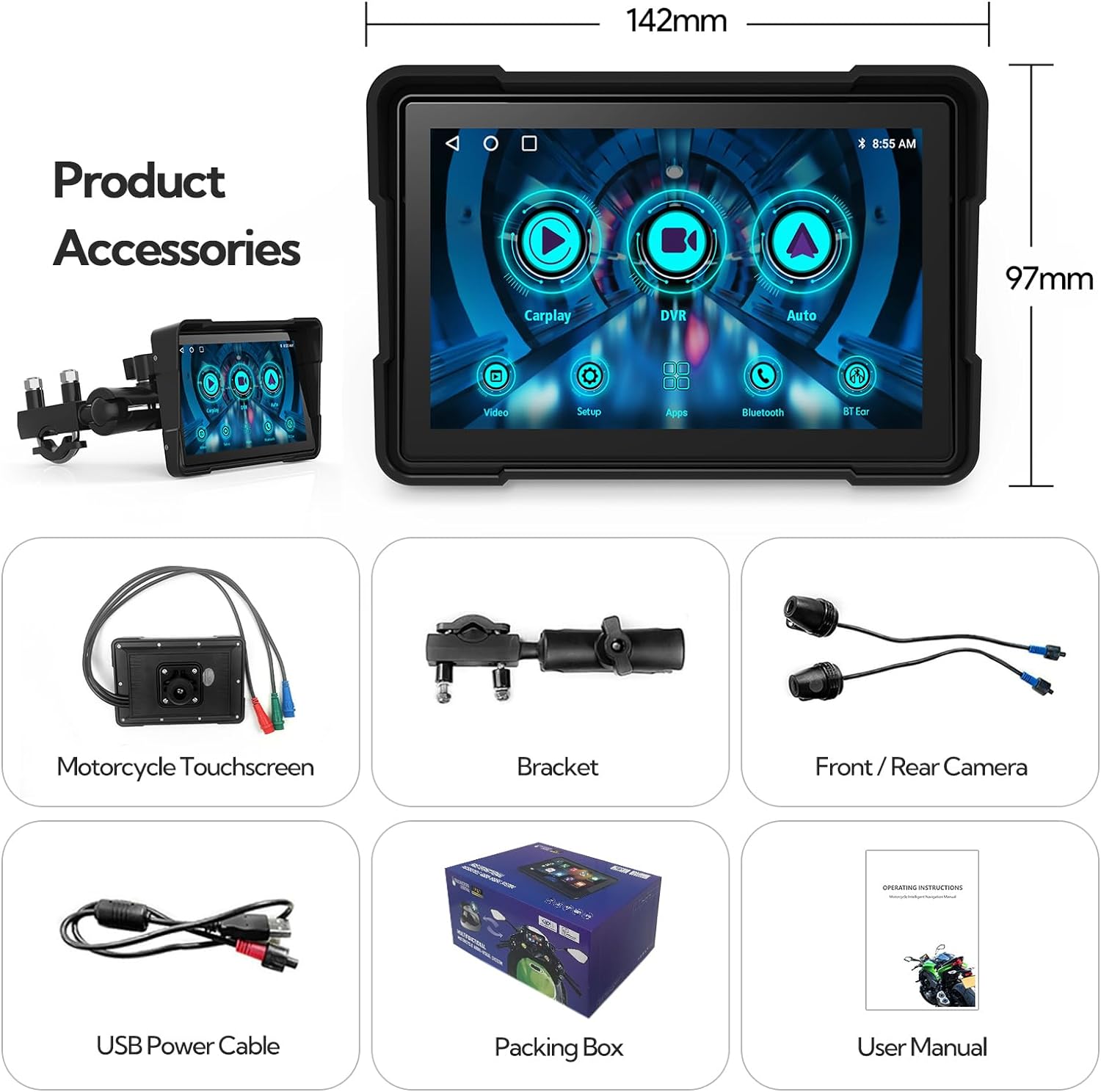 🏍【After-sales and warranty service】This wireless CarPlay touchscreen comes with a one-year warranty. If you have any questions about this wireless motorcycle carplay, please feel free to contact us and we will respond within 12 hours!
