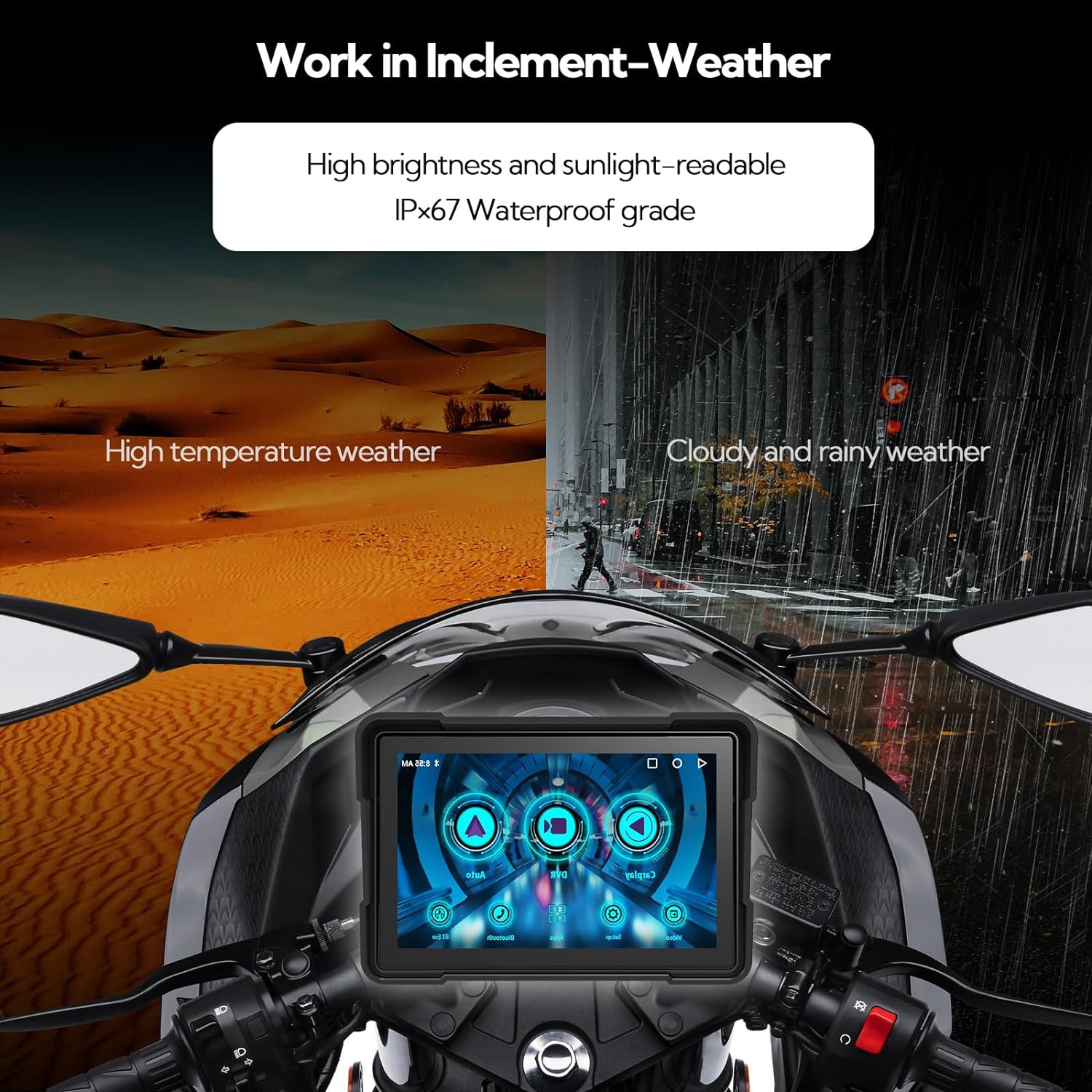 🛵【Easy to install and waterproof】Our Motorcycle GPS Navigation System features a specially designed bracket kit and screw system for effortless screen mounting on any motorcycle. With an IPX67 waterproof rating, it withstands various conditions but avoids high-pressure water guns or prolonged soaking. Reminder: Turn off vehicle power before installation and power on after completion.